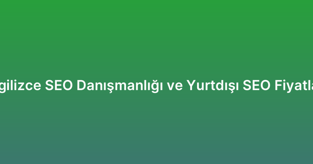 Yabancı pazarlara açılmak isteyen Türk işletmeleri için İngilizce SEO danışmanlığı, dijital dünyada başarıya ulaşmanın anahtarıdır. Global rekabet ortamında, etkili uluslararası