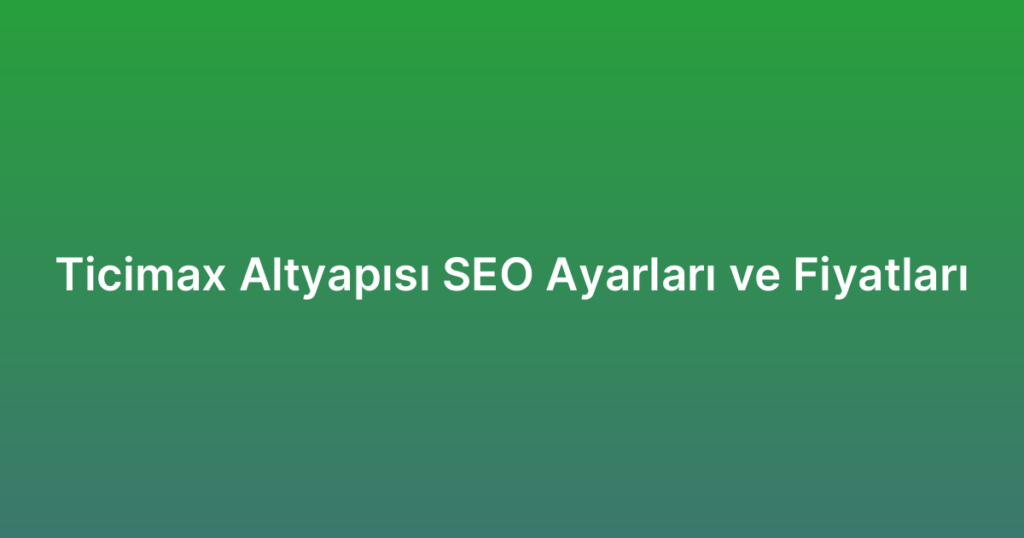 Ticimax Altyapısı SEO Ayarları ve Fiyatları