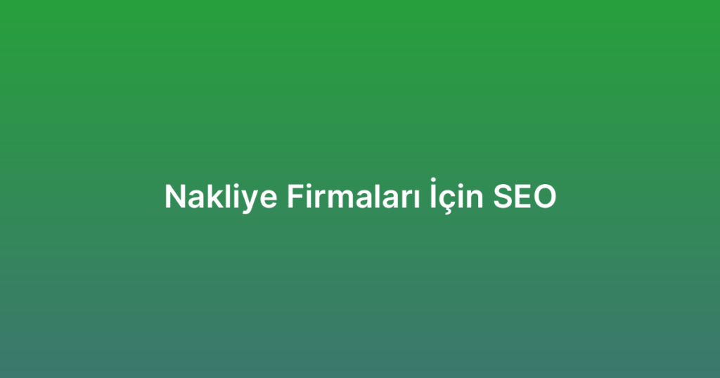 Nakliye firmaları, rekabetin yoğun olduğu bir sektörde yer alıyor ve dijital ortamda görünürlüklerini artırmak için etkili bir SEO stratejisi geliştirmek