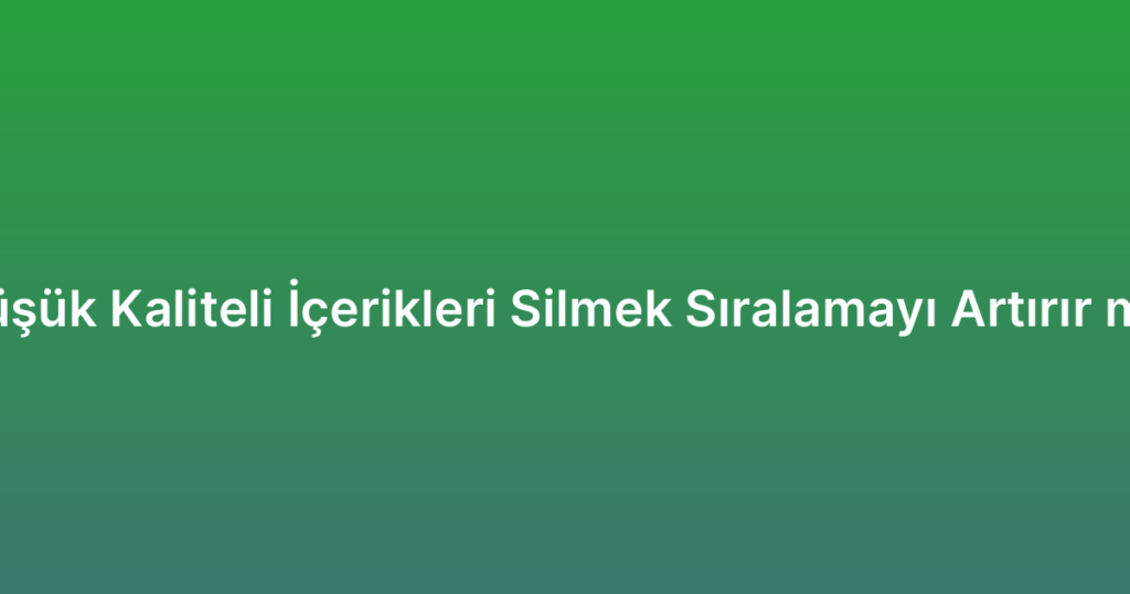 Düşük kaliteli içerikleri silmek, SEO stratejileri açısından önemli bir adımdır. İnternetteki rekabetin artmasıyla birlikte, arama motorları kaliteli içeriklere daha fazla